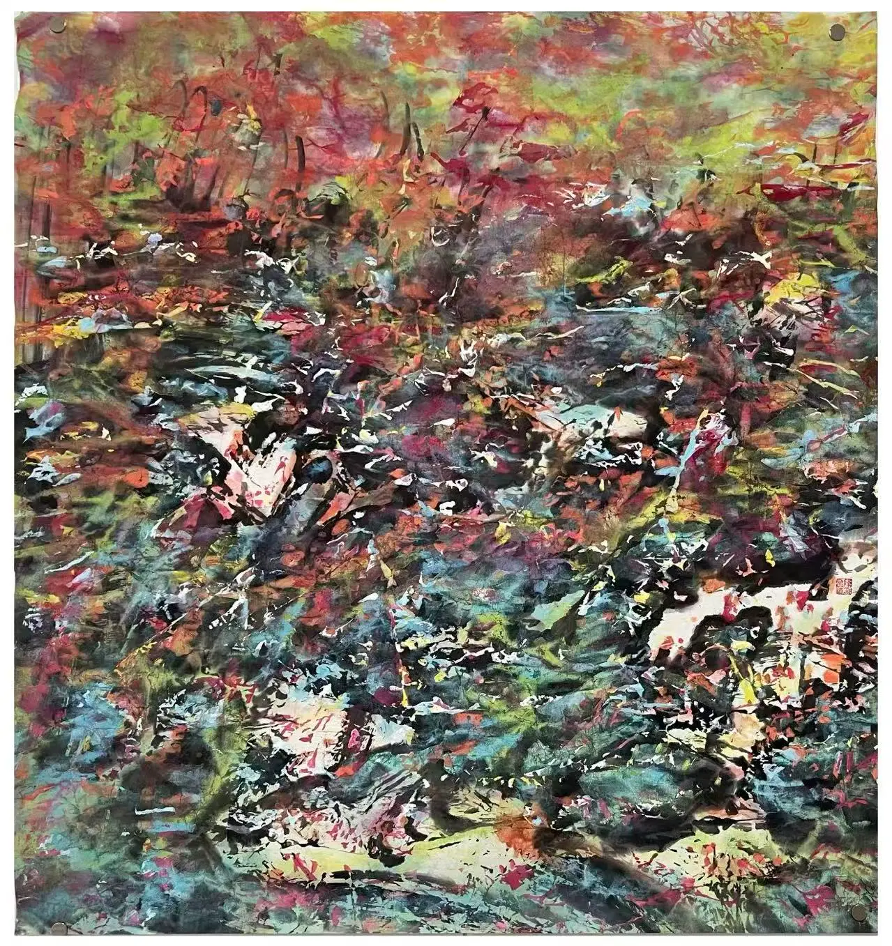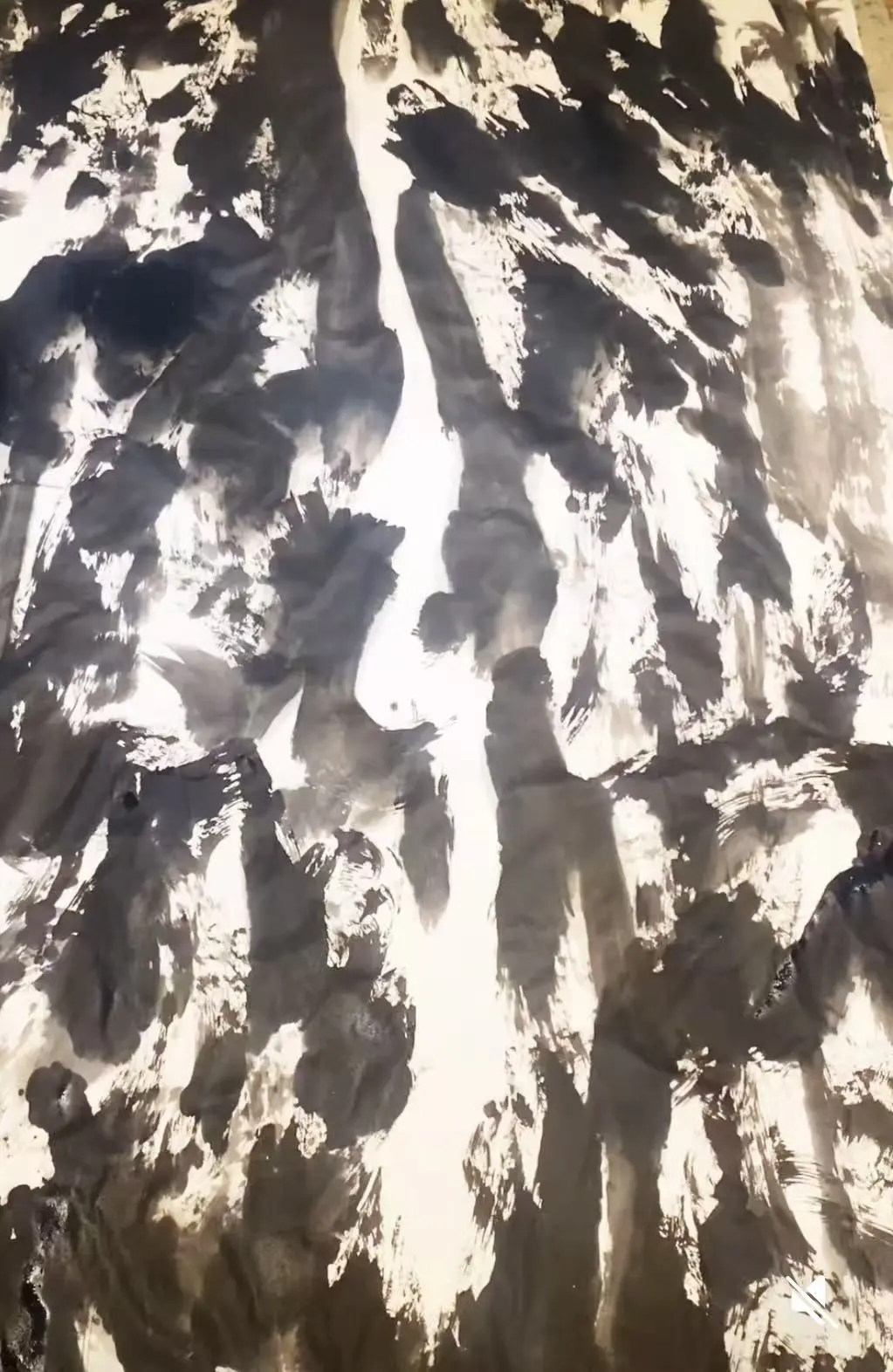 森象主义心流作品把墨稿线偶尔隐藏,因后续揉皱重彩甚至重组叠加笔墨。但我理解国画用生宣妙在尽管画面不显露了底稿痕迹但其沉淀的厚实度依然存在,它是有其生命律动的。森象主义心流”创作法,正是将中国画的“书写性”从“线条的书写”升华为了 “整个创作过程的书写”。传统书写记录的是笔尖在纸面一瞬间的运动。