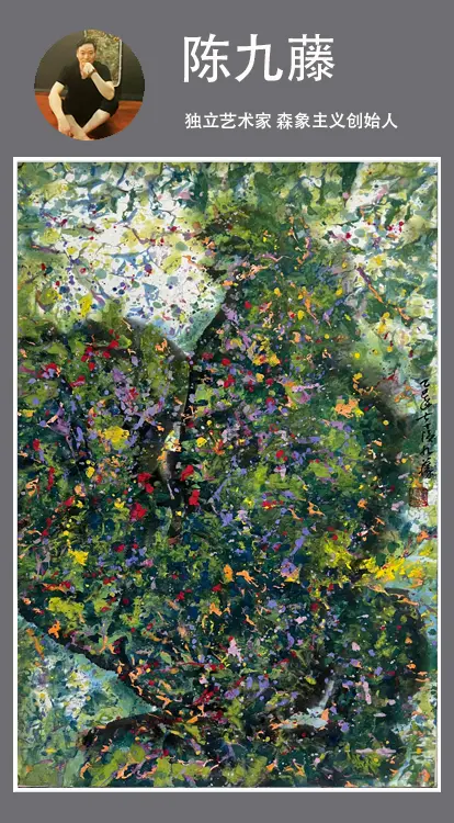 但是一样的,传统中国画也已经是末路穷途了,传统中国画已经演变不出来东西了,因为中国画它死守着老祖宗那点老成本在这里用的嘛,但这个老成本的话,目前呢。人的心也静不下来,然后市场也缺失,所以迟早也会进博物馆。所以,真正搞中国画的话,会一年不如一年,会越来越难搞。所以出于这种想法,我必须改变,必须创新。变不是一时变呢,五六年前,七八年前就开始想变的,变要找到自己的感受力,表现出来才能变得出新花样,所以森象主义就是这几年研发出来的。