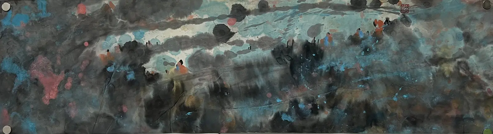 • 构图:写意自由,山峦与人物剪影疏落分布,打破明确边界。