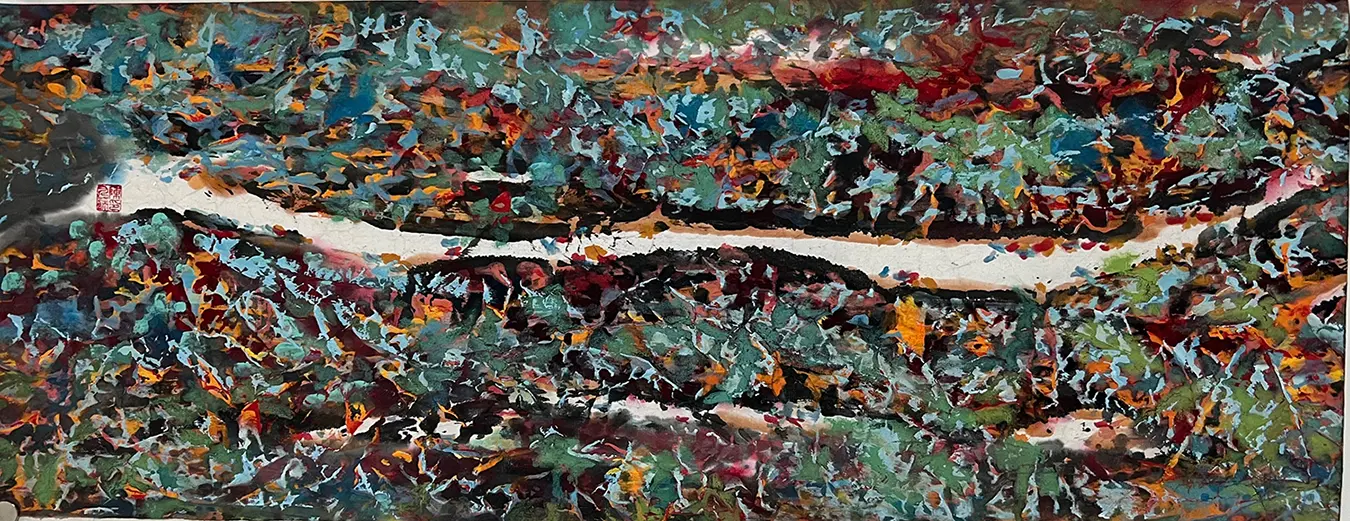 • 氛围:它不描绘具体物象,却传递出生命本身的澎湃能量——既有自然伟力的壮美,又有精神世界的奔放。观者仿佛能听到色彩碰撞的声响,感受到一种超越形式的、纯粹的艺术生命力。