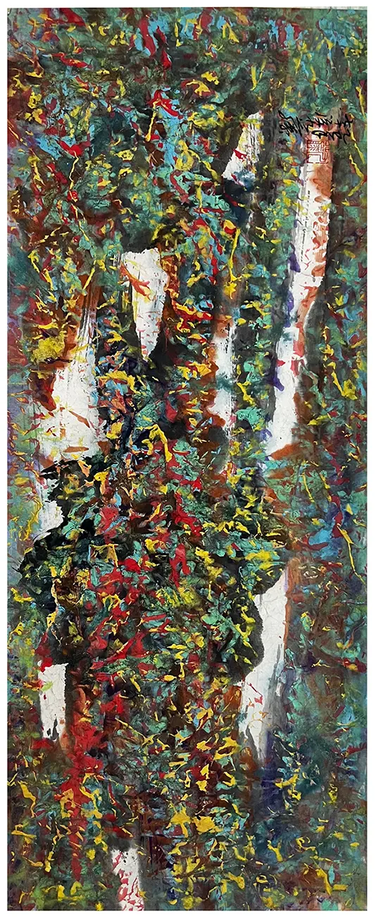 • 构图:画面中并没有明确的物象轮廓,而是由色彩的块面和线条构成。这种非聚焦式的构图方式增加了画面的观赏趣味性和探索性,让观众能够从不同的角度去发现和解读画面中的内容。
